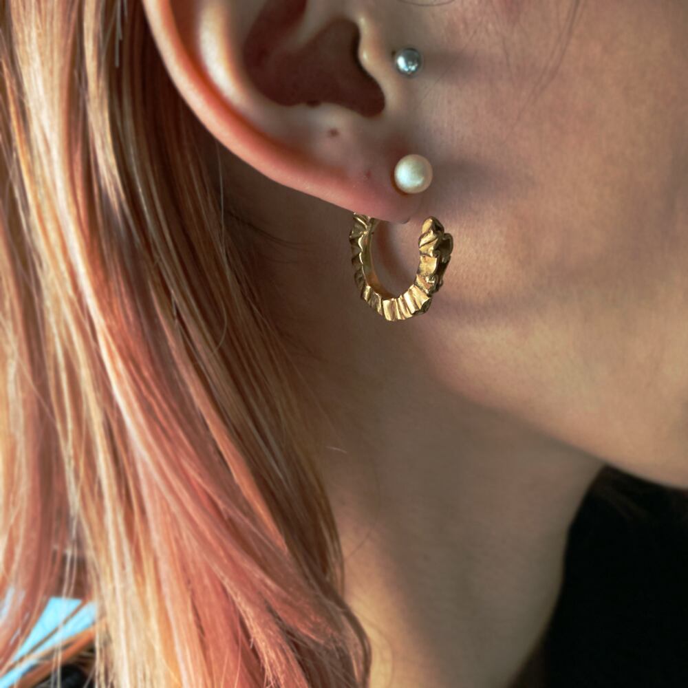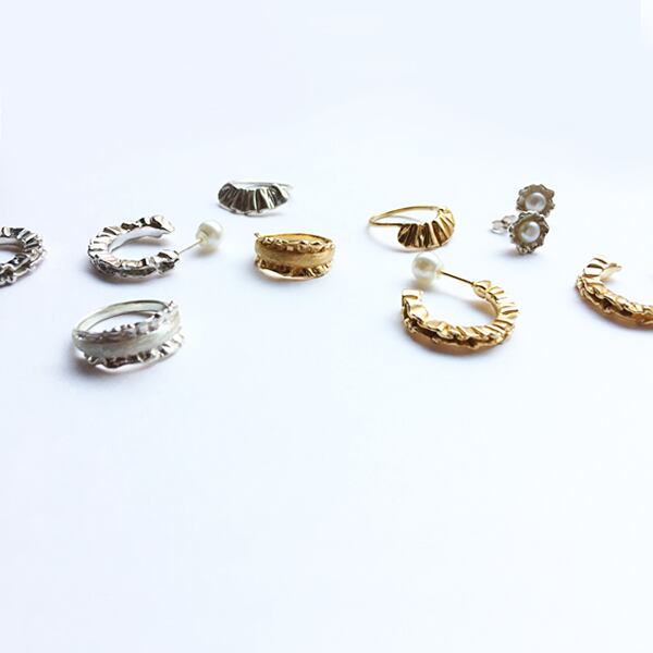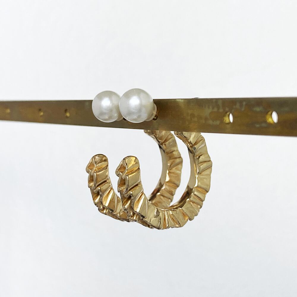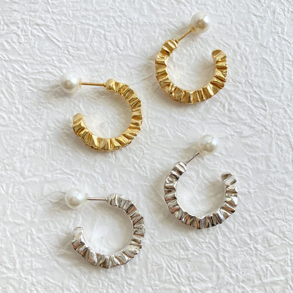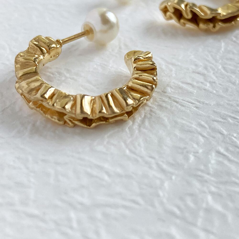 布で作られる柔らかなフリルを金属で表現した「frill」シリーズのピアスです。