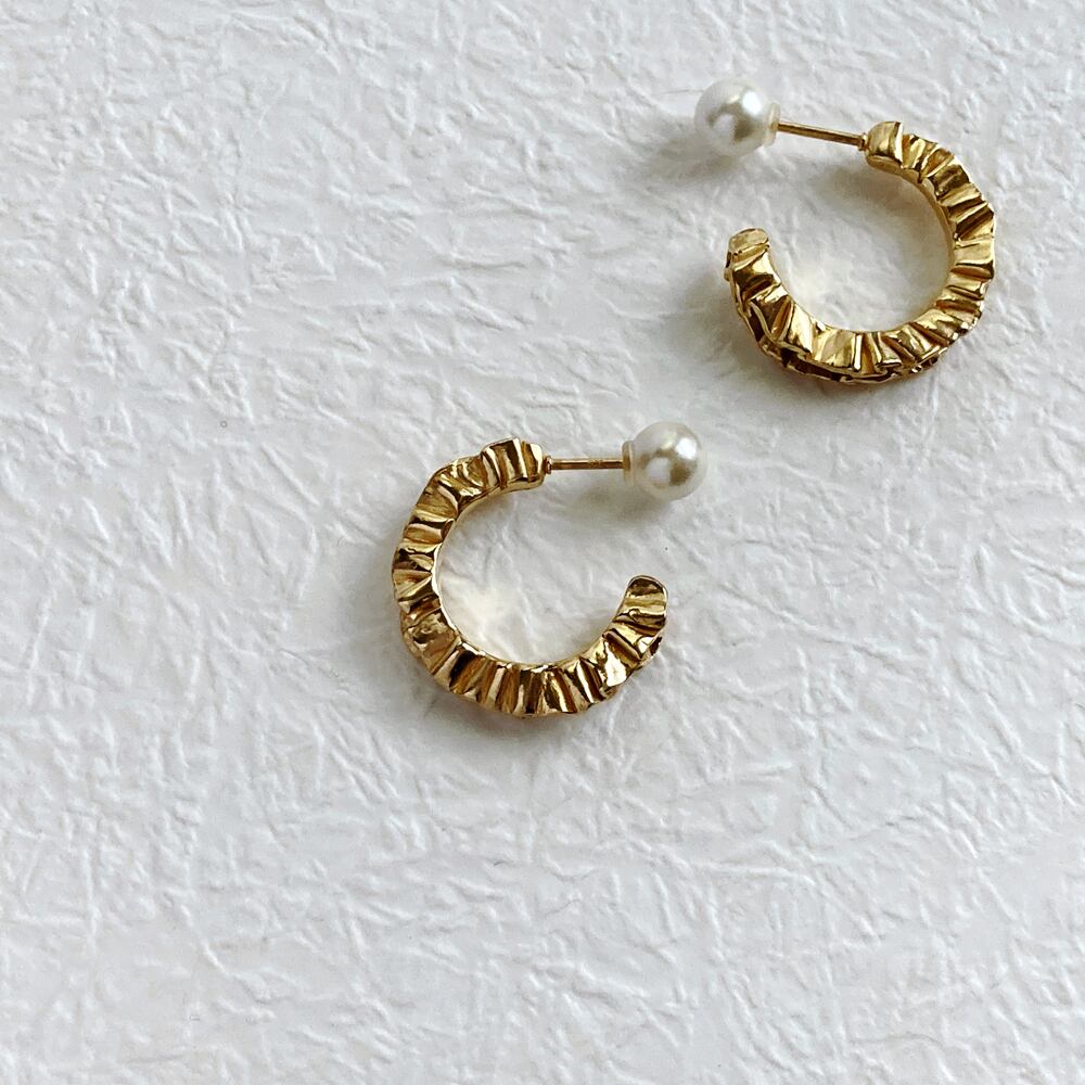 華やかさと重量感のあるフォルムが魅力的なフープピアスは、存在感抜群の大人かわいいアイテムです。