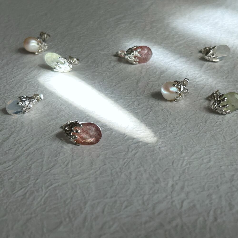 ※7・8・9枚目の写真は、着装見本のため、「gem bud pierce<Prehnite>」を使用しております。