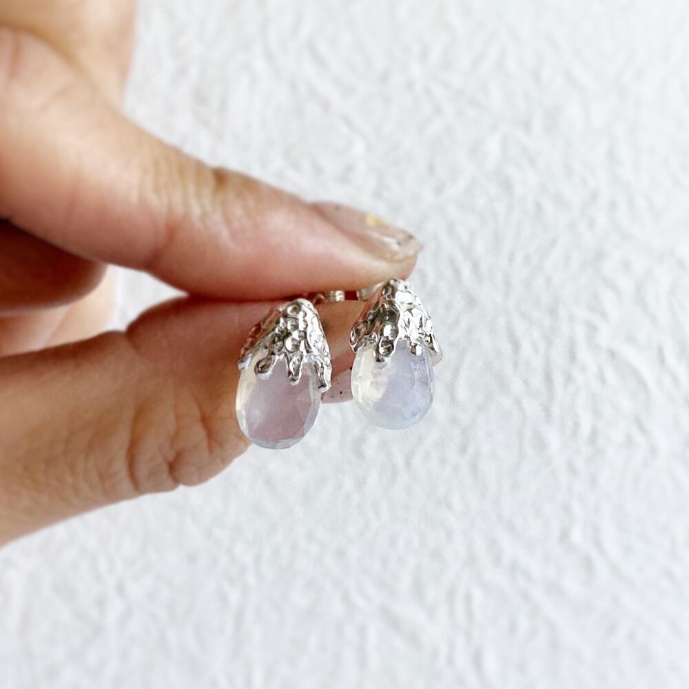 使用している石は、天然の半透明の乳白色が美しいシルキークォーツ。