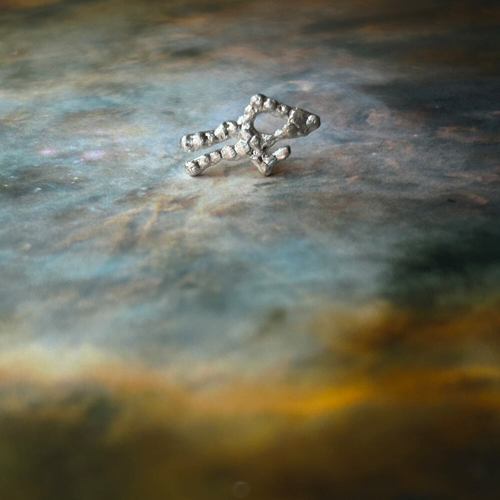 存在感のあるユニークな形は、実際の星の配置をもとに、1つ1つ小さな粒で表現しました。
